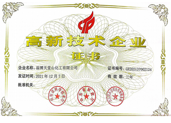 公司產(chǎn)品符合國家的產(chǎn)業(yè)政策,各種手續(xù)齊全,通過了環(huán)保、衛(wèi)生、消防、安全生產(chǎn)許可等各項(xiàng)驗(yàn)收,企業(yè)化學(xué)品安全標(biāo)準(zhǔn)化三級達(dá)標(biāo)驗(yàn)收,并且通過了ISO9001質(zhì)量管理體系認(rèn)證、ISO14001環(huán)境管理體系、ISO45001職業(yè)健康管理體系,先后被有關(guān)部門授予“市級重合同守信用企業(yè)”“消費(fèi)者滿意單位”“質(zhì)量、計(jì)量管理先進(jìn)單位”“勞動(dòng)關(guān)系和諧企業(yè)”“企業(yè)免檢單位”“淄博市專精特新中小企業(yè)”“山東省化工明星單位”“山東化工發(fā)展?jié)摿?0強(qiáng)”“淄博市智能車間”“山東省創(chuàng)新型中小企業(yè)”“科技型中小企業(yè)”“高新技術(shù)企業(yè)”“山東省專精特新”等稱號。